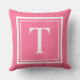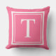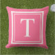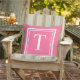 A bold outdoor pillow featuring a white monogram initial inside a square frame border on a bright pink background. The timeless serif letter and clean geometric frame bring playful, feminine energy to patio furniture, poolside seating, or garden decor. The initial is fully customisable.