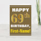Bold, Brown, Faux Gold 69th Birthday w/ Name Card