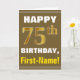 Bold, Brown, Faux Gold 75th Birthday w/ Name Card