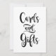 Direct guests to the gift table with this eye-catching "Cards and Gifts" sign in bold, expressive brush script. The striking black lettering on white creates a clean, modern statement piece that pairs effortlessly with any wedding style or colour palette. A simple yet impactful addition to your reception decor. All text is fully customisable.