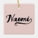 Modern minimalist typography text design for Naomi with swash on the I on a square ceramic photo ornament.