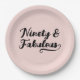 Bold Brush Script Ninety & Fabulous Blush Paper Plate