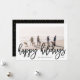 Happy Holidays Script in black, wishing your loved ones in style. Your photo on the back or current backing pattern. Funky Calligraphy script style. Lettering style. Big photo design. Happy, festive design.