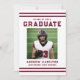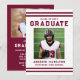 Celebrate your graduate’s milestone with this bold burgundy varsity-style graduation party invitation, featuring classic athletic stripes and strong collegiate typography for a timeless sports-inspired look. The front showcases the graduate’s photo alongside their name, school, and graduation year in a clean, structured layout that highlights their achievement with confidence and pride. The back features a horizontal photo at the top, with space below for graduation party details including the date, time, location, and RSVP information, creating a complete and personalized design. Perfect for high school and college seniors, student athletes, and sports enthusiasts, this burgundy photo graduation party invitation offers a polished and memorable way to invite family and friends to celebrate their accomplishment.
