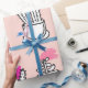 This pattern showcases hand-drawn cactus illustrations set against a playful blush background, enhanced by bold brushstroke splashes in vibrant pinks, blues, and purples. The combination of simple black-and-white cactus sketches with energetic pops of colour creates a dynamic, artistic contrast, giving the design a modern and fun aesthetic.