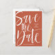 Bold Calligraphy in white colour against orange rust background for this trendy and modern save the date.