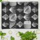 Perfect for fans of unique decor, this pattern combines modern abstract geometrics with traditional mudcloth influences, all set against a striking black backdrop with white tribal motifs.