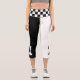These statement leggings have a bold split design with one leg black and the other white with a chess queen on each leg and a chess board design for a waist band.