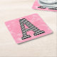 Bold Chevron Letter A on Bubblegum Pink Square Paper Coaster