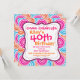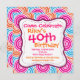 Bold teal blue, hot pink fuchsia, and orange concentric circle pattern invitation template. This invitation is shown as a 40th birthday party invitation, but these cute birthday party invitation templates can easily be used for a kids or adults, or can be customised for any type of party or event. Simply fill in the text with your own party details. If you want to change the colour of the text or rearrange things, simply use the orange "Customise It" button. The back of the invitation has the same colourful pattern as the front side.