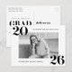 Celebrate your graduation with these modern bold 2025 graduation party invitation postcards, featuring a sleek design with your horizontal photo framed in white and bold black “2025” lettering in the top left and bottom right corners. Personalise the front with your name and school, while the back includes your graduation party details and return address in black for a polished look. Perfect for high school or college graduates, these stylish graduation postcards make inviting guests easy while leaving a lasting impression.