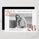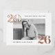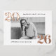 Modern graduation party invitations featuring the graduate's horizontal photo framed in white with 2025 in bold, rose gold foil lettering at the top left and bottom right corners. Personalise the front of the photo graduation party invites with the graduate's name and school name. The foil graduation invitation reverses to display your party details in white lettering with a black background. The background colour can be changed to a colour of your choice with our edit design feature. The rose gold foil graduation party invites work perfectly for both high school and college graduation parties.