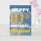 Bold, Cloudy Sky, Faux Gold 69th Birthday + Name Card
