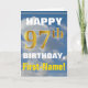 Bold, Cloudy Sky, Faux Gold 97th Birthday + Name Card
