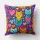 Bold colour kittens and hearts purple pattern cushion