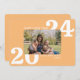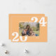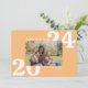 This trendy and modern New Years photo card features large white typography numbers with a single horizontal photo. The greeting on the front says "Happy New Year".