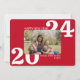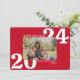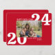 This trendy and modern New Years photo card features large white typography numbers with a single horizontal photo. The greeting on the front says "Happy New Year".