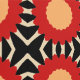 This peel and stick wallpaper features a captivating design with bold colours and intricate patterns. The dominant colours are black, red, orange, and white. The red flowers have orange centres, creating a vibrant contrast against the dark background. The graphic style leans towards folk art. It feels handcrafted, as if someone painted it directly on the wall. The organic shapes and imperfect outlines give it an authentic, free-spirited vibe. The repeating pattern includes stylised floral motifs and tear-shaped elements. The flowers are interconnected by delicate black lines, forming an intricate network.