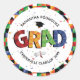 It's all about the bold colours here as your graduate steps out into the world. The word GRAD in four colours chopped into segments with a confetti background. Pattern of red, green, blue, yellow, black, and white in half-square triangles forms the border. Overall a great festive look for invitations or party supplies. Personalise with the graduate's name, school and class year. Matching products available.