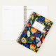 Personalise this planner with your name in black italics framed by a white rectangle, on a bold, colourful floral pattern on a black background.
