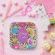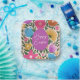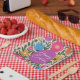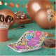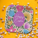 These beautiful Easter paper plates feature a hand drawn floral design in magenta pink, purple, orange, golden yellow, blue, and green over a custom colour background (shown in light peach). Stylish text reading, "Happy Easter" stands out against a purple Easter egg. T