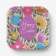 Bold Colourful Florals Stylish Easter | Purple Egg Paper Plate