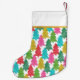 Add some fun and whimsy to your holiday celebration with this bold Christmas stocking, featuring an overlapping tissue paper Christmas trees design on both the front and the back. A faux gold ribbon band adds a touch of lavishness. Easy to personalise! Font and text colour can be customised, if desired.