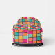 The bag features a colourful patchwork design with squares of the same size arranged in a grid pattern, creating a vibrant and eye-catching appearance.