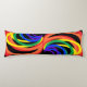 This gorgeous body pillow features an abstract three dimensional pattern of rainbow crescent moons in bold colours of red, orange, yellow, green, blue and purple on a black background.