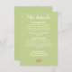 Simple and stylish retro colourful wedding guest info details. With funky green background and white text layout. All the info are customisable as website, transportation, accommodation . Grab it along with other products from this classy hand made retro wedding suite.