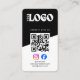 "Bold Connect With Us QR Code Logo Social Media Business Card" features a clean, bold black and white design layout, that stands out, and provides ample space for your logo, QR code, and colourful social media icons (Instagram, Facebook), that are prominently displayed on a black and white diagonal shapes, ensuring that clients and contacts can easily connect with you digitally: access your website, social media account, or contact details with a quick scan. Customisable by adding your logo, QR code link, social media icons, and contact details.