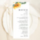 This bold country sunflower | wedding dinner menu is perfect for your simple classic boho summer backyard barn wedding reception. Design features a bouquet of vintage watercolor yellow gold and rustic orange sunflowers, elegant modern sage green eucalyptus greenery, and a white ivory rose. The design is ideal for a casual outdoor minimalist fall foliage wedding. Please feel free to contact us with any questions regarding the product's design; cheers!