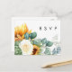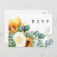 This bold country sunflower | wedding RSVP postcard is perfect for your simple classic boho summer backyard barn wedding. Design features a bouquet of vintage watercolor yellow gold and rustic orange sunflowers, elegant modern sage green eucalyptus greenery, and a white ivory rose. The design is ideal for a casual outdoor minimalist fall foliage wedding. Please feel free to contact us with any questions regarding the product's design; cheers!