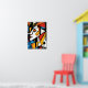 Dramatic and bold cubist style artwork features bold lines, vibrant colours geometric shapes and an intriguing partial face seen from a partial angle. Great artwork for an office, dorm room or anywhere you'd like bold colours and expressive abstract art.