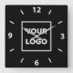 Bold Custom Business Logo on Black Background Square Wall Clock