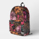 Bold Dark Vintage Florals Magenta Monogram Printed Backpack
