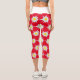 Bold Edelweiss Floral Pattern Red Capri Leggings