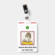 This bold and eyecatching employee badge design features editable information such as a portrait photo, a company logo, a staff member name, and a role/title. A badge like this could perhaps be used to indicate that a person is a known and authorised employee at a business or workplace. [~Z0000450]