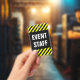 Bold "EVENT STAFF" + Black & Yellow Stripes Badge ID Badge