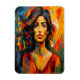 Transform your space with this powerful AI-generated expressionist artwork flexible photo magnet art print, depicting a woman in a burst of vivid colours and dynamic brushstrokes. This abstract portrait captures the intensity of human emotion through a blend of fiery oranges, deep blues, and rich reds, creating a sense of movement and depth. The striking combination of colours and textures gives this piece a unique, almost three-dimensional quality that draws viewers in and evokes a strong emotional response. This artwork is a modern take on traditional expressionism, where the emphasis is placed on conveying deep feelings rather than realistic representation. The woman's gaze is intense, almost challenging, as if she’s looking straight through the canvas, making this piece both a statement and a conversation starter. Perfect for those who appreciate art that conveys passion and emotion, this artwork is ideal for modern living spaces, offices, or art galleries.