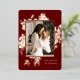 This gorgeous holiday photo card features cutout flowers in real foil over a dark burgundy red background. Easy to personalize! The back contains a pattern of tiny burgundy dots, and the background color can be customized, if desired.