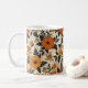 Start your day with a burst of colour and creativity with this beautifully designed mug. Featuring a bold floral geometric pattern, the vibrant orange blooms and sleek leaves bring a touch of retro 70s style to your morning routine. This mug is perfect for adding personality to your coffee or tea time, whether you're at home or at the office. Made from durable material, it’s not only visually appealing but also practical, designed to brighten your day with every sip. Elevate your drinkware collection with this unique and artistic design, and enjoy your beverages in style.