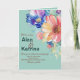 This mint green watercolor floral wedding invitation features bold artistic watercolor florals in coral, blush pink, peach, and magenta tones, creating a vibrant yet elegant tropical-inspired colour palette. The fresh mint green background adds a modern airy boho feel, perfect for couples who want a colourful, artistic, and stylish wedding design.