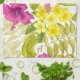 Colourful and bold floral print kitchen towel with retro type monogram.