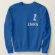 Bold white fonts on a personalised blue sweatshirt . Easy to personalise it now with her monogram and name . From the store of lumirala .