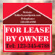 BOLD FOR LEASE BY OWNER Custom Real Estate Window Cling. Click personalise this template to customise window decal with your own Website information and your own telephone number quickly and easily. Ships Worldwide fast.