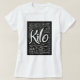 This T-shirt design features the word "Kilo" in a bold, playful cursive typography. The white lettering stands out sharply against the deep black background, creating a striking contrast that emphasizes the fun and energetic vibe of the design. The cursive style adds a touch of elegance and flair, making this shirt both stylish and eye-catching. Perfect for those who want to wear a simple yet impactful design that’s full of personality.