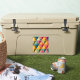The stick looks amazing. Unfortunately, it would not stick on our suitcase as it was textured. When we found a non-textured (smooth) suitcase, the sticker stuck and looks great. The printing looked awesome.