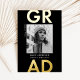 Announce your graduation in style with our modern photo graduation announcements! The trendy graduation announcements display your graduate's photo with "Grad" in real gold foil lettering against a solid black background. Personalize the front of the black and gold graduation announcements by adding the graduate's name, school name, and graduation year. The announcement reverses to display a black geometric pattern with a white background.