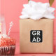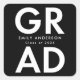 Personalized graduation stickers featuring "Grad" in bold white lettering with a black background. Personalize the modern graduation stickers by adding the graduate's name and graduation year. Use the graduation stickers to seal envelopes, favor bags, and more!